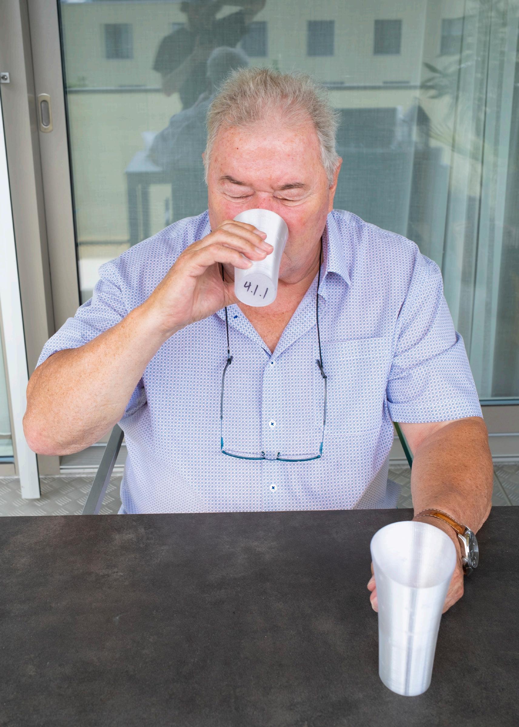 Aus dem Trinktest kann gesagt werden, dass die runde Form Nr. 8 und jeweils die kleinen Varianten von Nr. 7 und Nr. 8 aus dem Rennen fallen. Der Grund für den Rauswurf von Variante 8 ist, dass die runde Grundform kein Anzeichen gibt, wie das Glas gehalten werden sollte, was aber für ein optimales Trinken zwingend notwendig ist. Die kleineren Varianten sind schlicht und einfach zu klein. Mein Vater kann sie nicht richtig halten und das Fassungsvolumen ist ebenfalls zu gering.