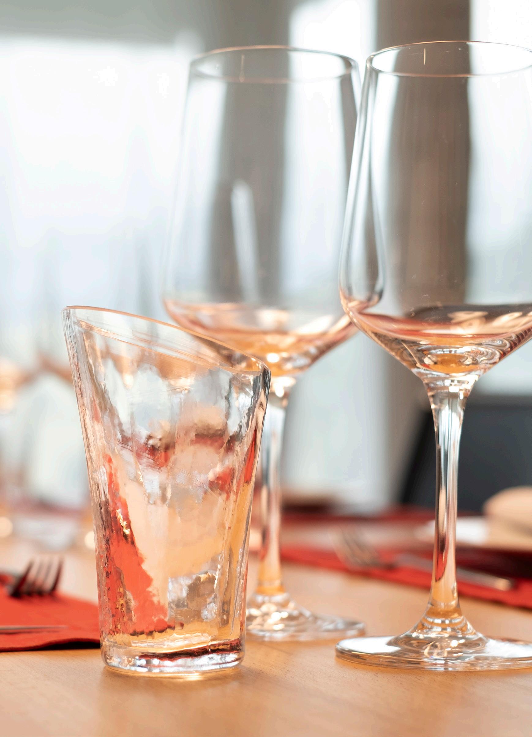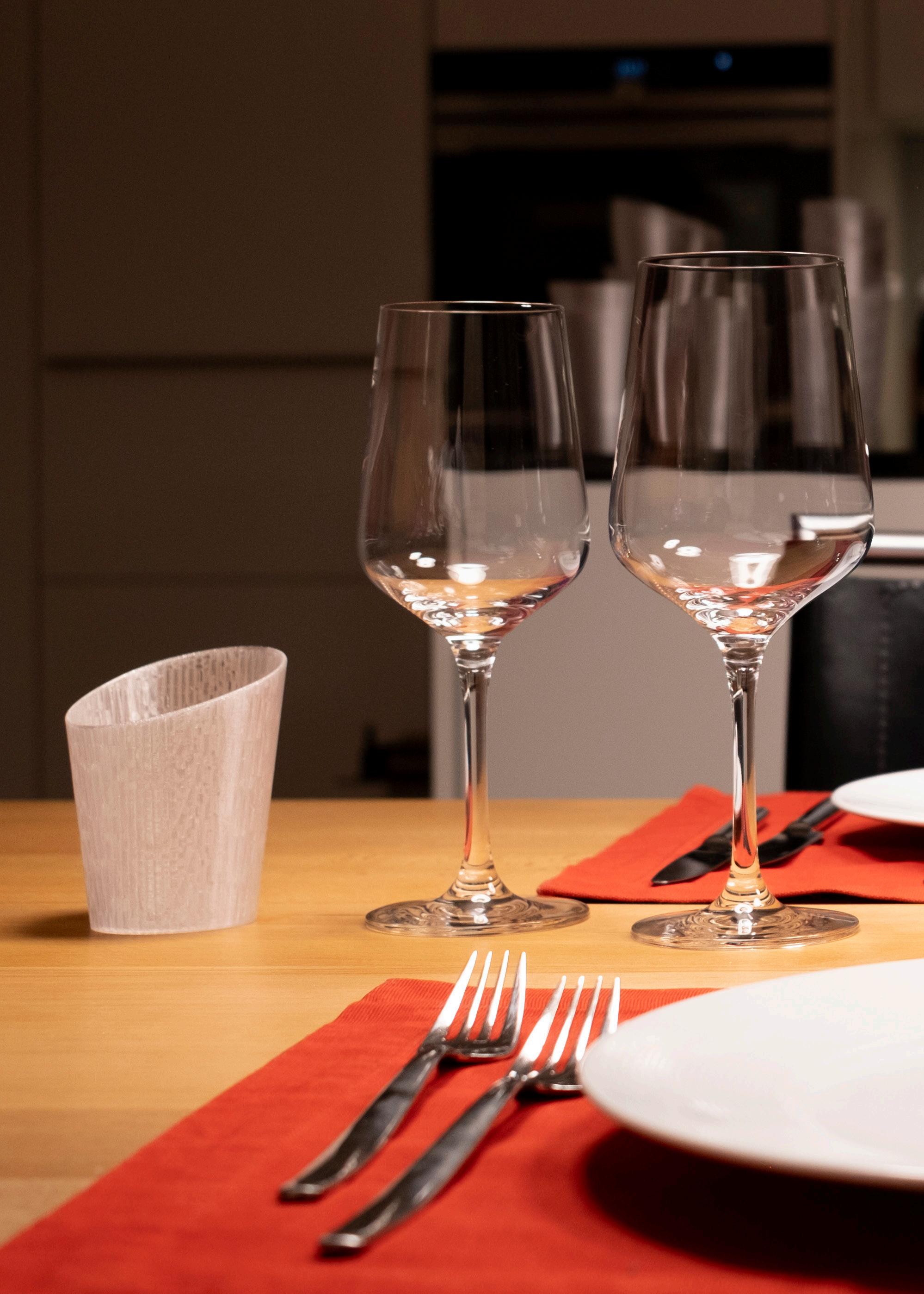 Die ersten Trinkversuche aus den Gläsern und diverse Impressionen auf dem Tisch.