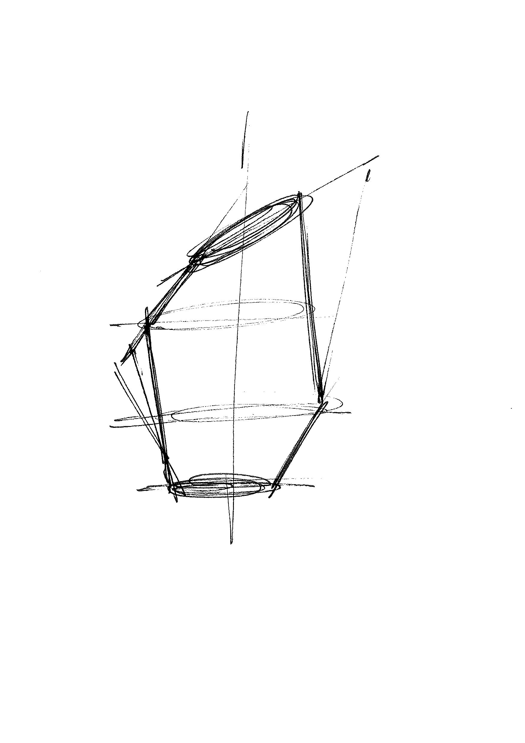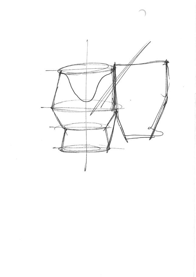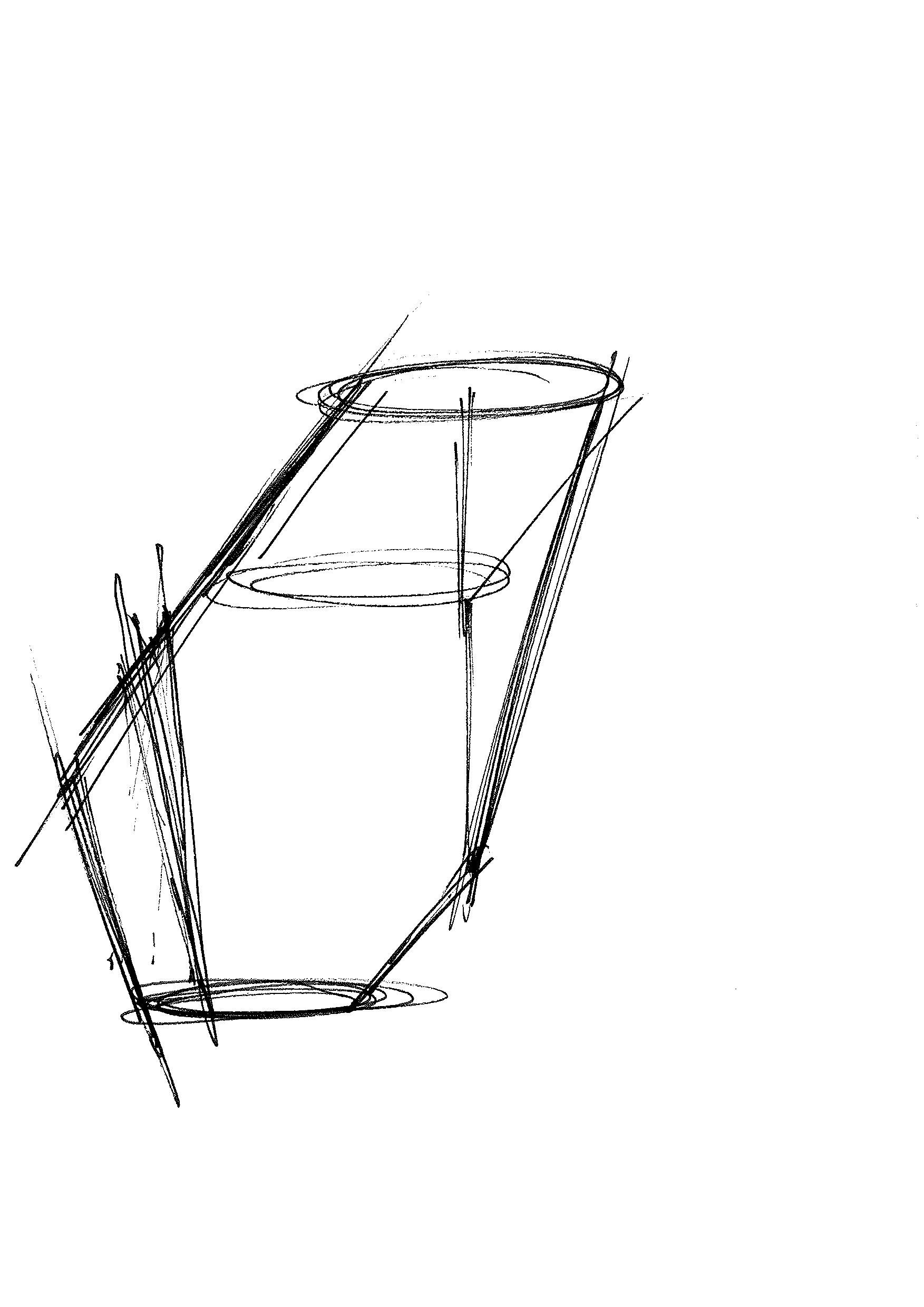 Die nächsten Seiten zeigen die ersten Skizzen und erste Modellversuche, um die Form und wichtigen Parameter des Trinkglases herauszu nden.