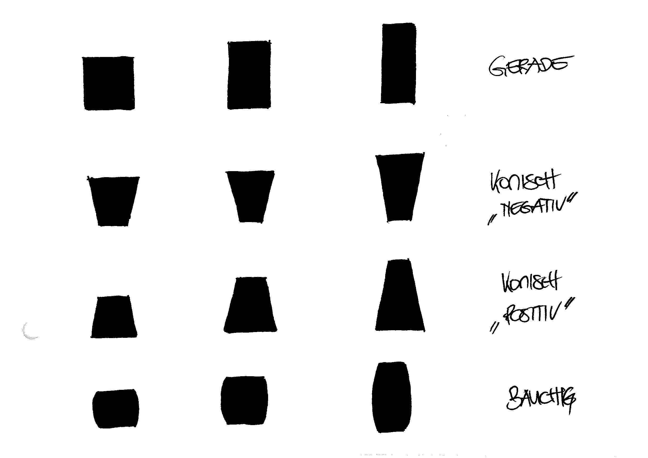 Unterteilen lassen sich die Gläser in folgende Formen: gerade, konisch negativ, konisch positiv und bauchig. Durch das Gespräch mit meinem Vater und den bestehenden Gläser zuhause (klein bauchig und mittel konisch negativ) konnte ich heraus nden, dass für die Sicherheit beim Trinken mindestens eine gerade Form vorhanden sein muss. Am besten sollte die Form des Glases konisch negativ sein. Dies verleiht am meisten Sicherheit. Konisch positiv und bauchig fallen gänzlich raus, denn diese vermitteln im Kontext von einem Hilfsmittel weder Sicherheit, noch bieten sie Sicherheit.