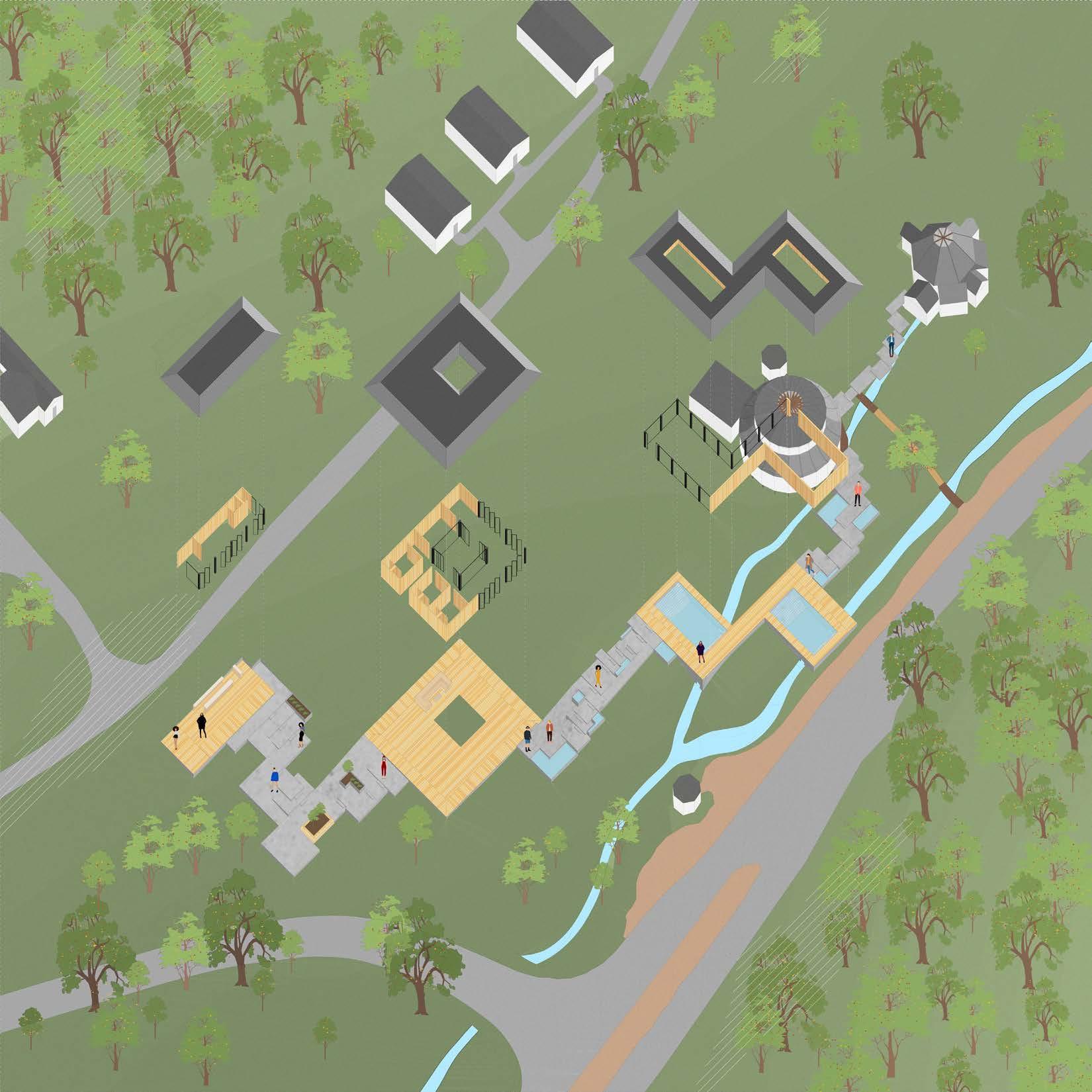A full semester of an architecture studio course taught by a Danish interior architect; took a sustainable design course learning about Scandinavian sustainability practices and how to apply them to design; projects included designing a garden pavilion and a community center.