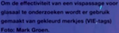 Om de effectiviteit van een vispassage voor glasaal te onderzoeken wordt er gebruik gemaakt van gekleurd merkjes (VIE-tags) Foto: Mark Groen.