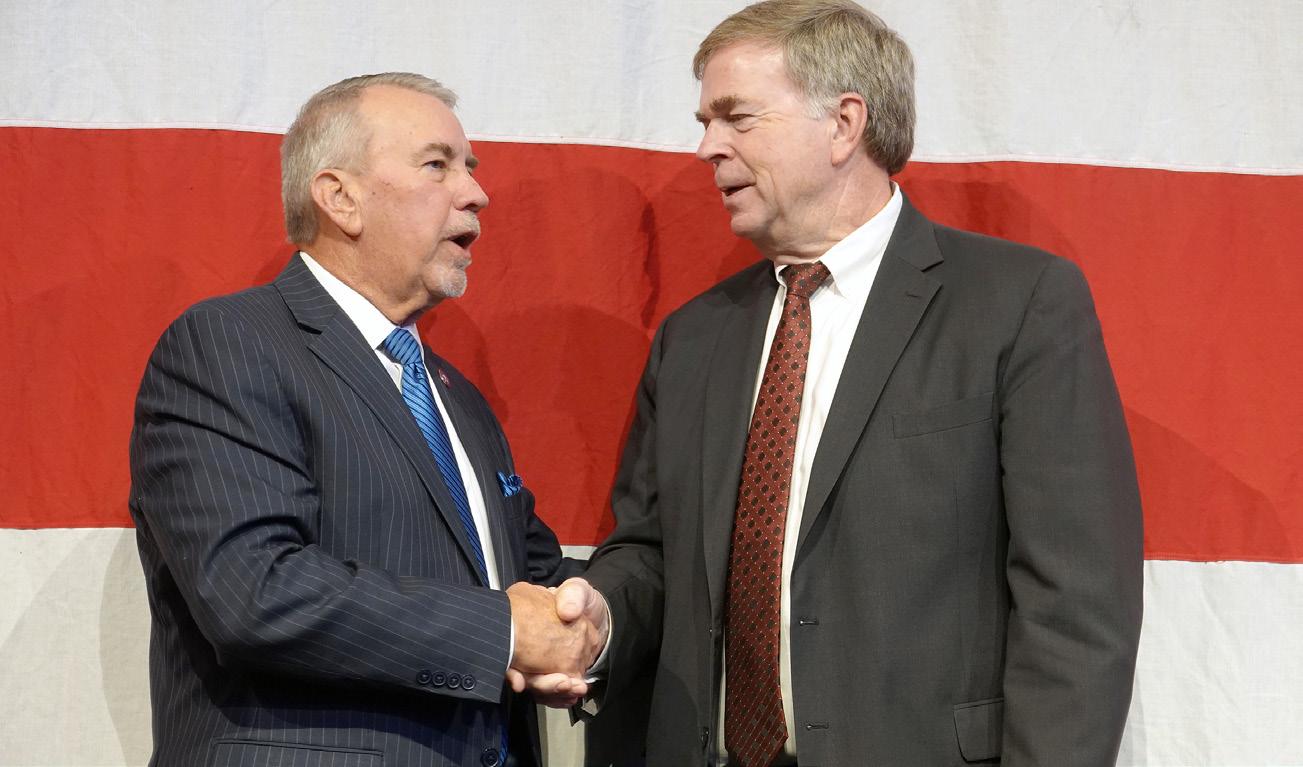 L-R: Chamber President & CEO Chip Cherry presents Hank with Hall of Fame designation.