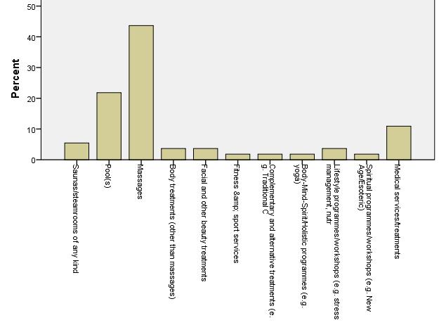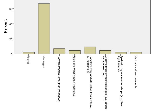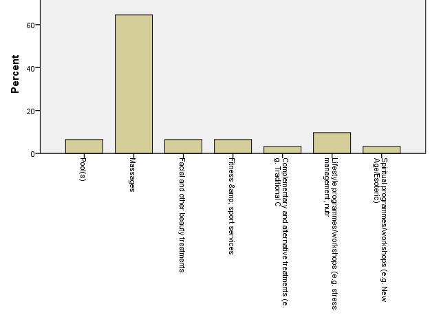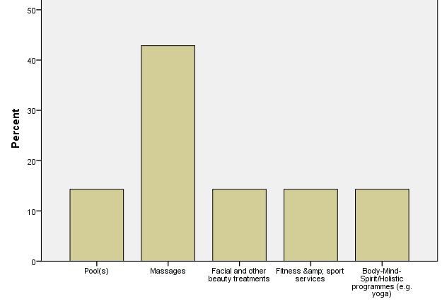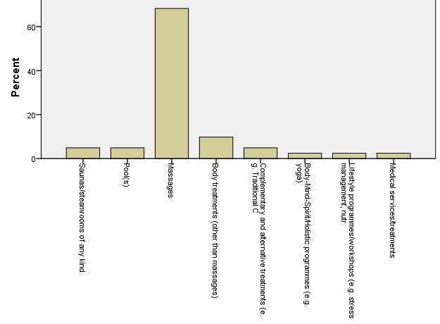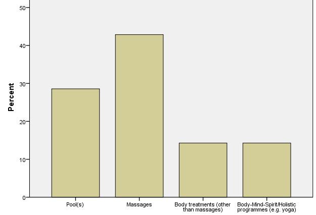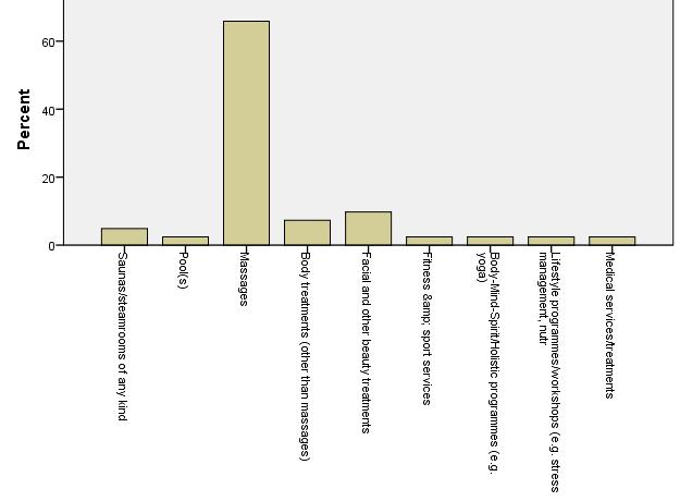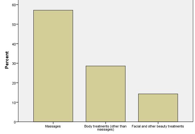 Foreign tourists look for less number of services than domestic tourists. Evidently massages are the most popular services, but body treatments are also relatively popular.
