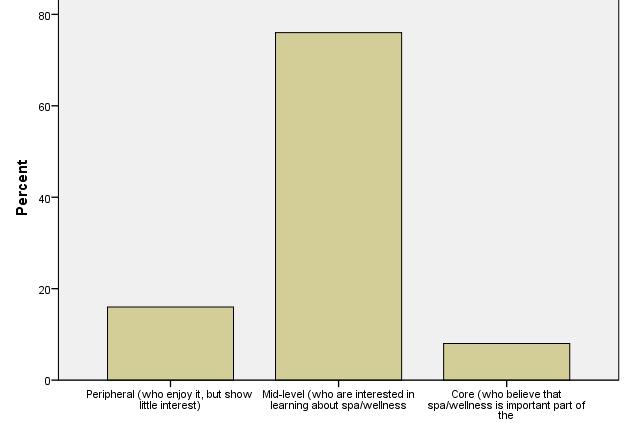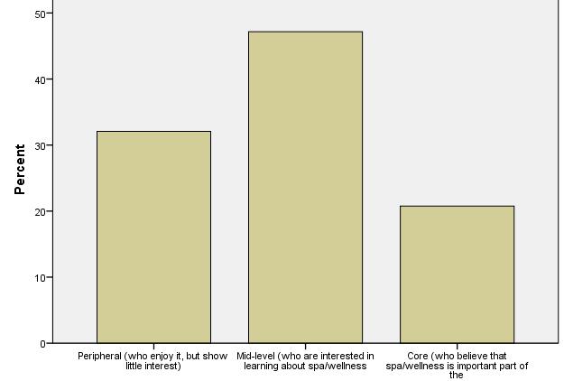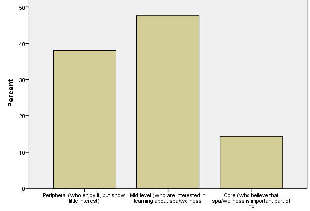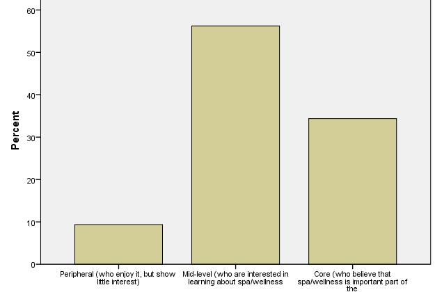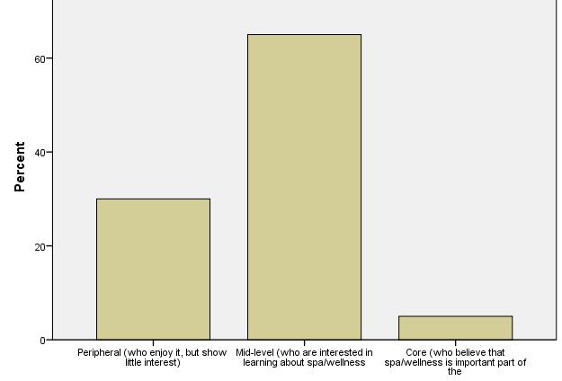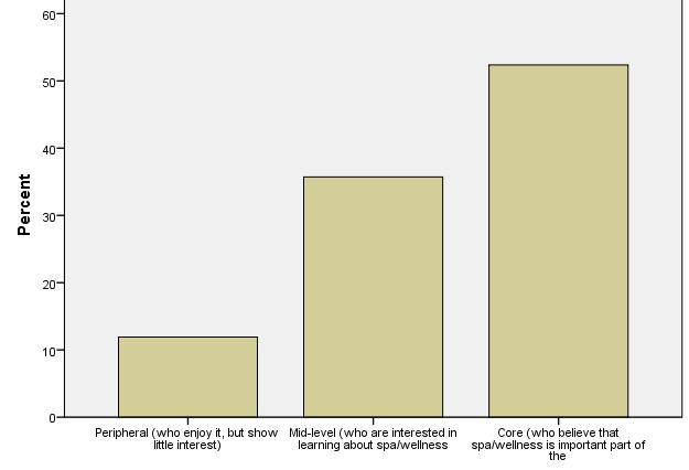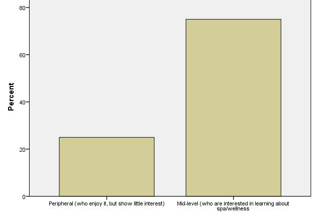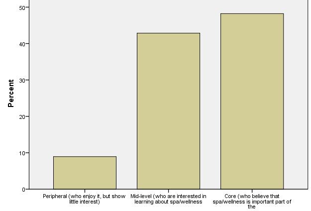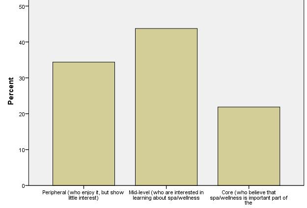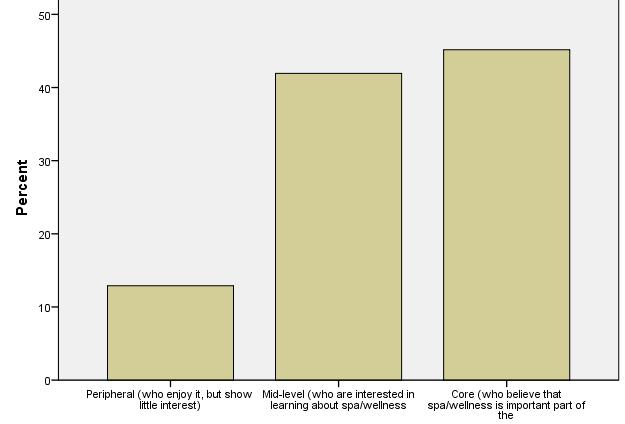 Peripheral customers enjoy spa and wellness services, but altogether show little interest. These figures show one of the key strategic and benchmarking findings of IWSTM. International visitors show strong dedication to what they are looking for, whereas domestic visitors are moderatelybeingdedicatedtospaandwellness.