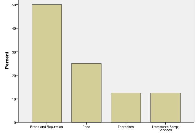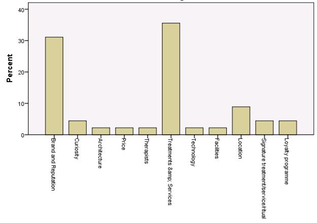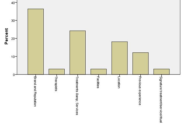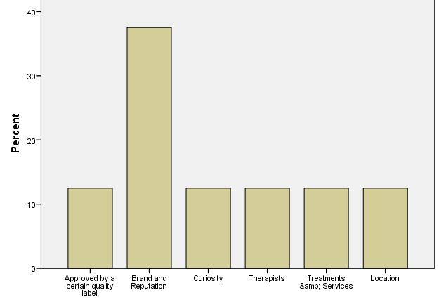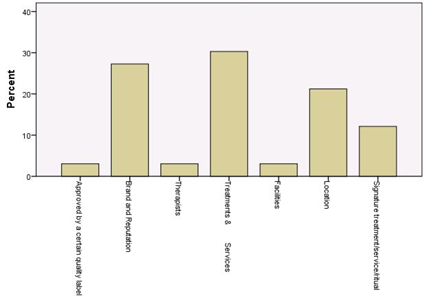Prices and therapists are (not that surprisingly) important mainly for local customers. The location and the availability of signature treatments are significant for tourists and especially for international tourists. Previous experience is not determining factor for international tourists, which means that they are visiting new sites and facilities and show low level of loyalty.