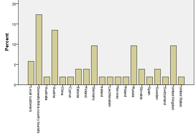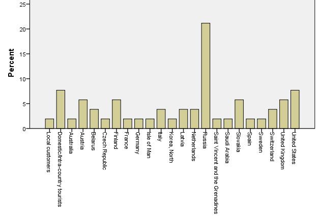 Source countries for tourism of customers