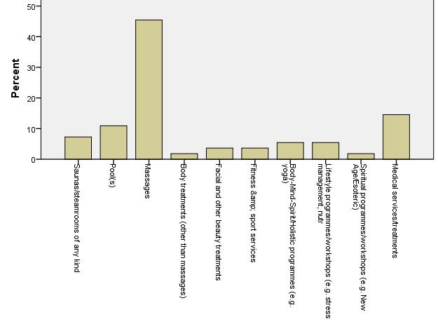 Any operator or investor in Europe has to understand that international tourists are looking for wide range of services (although massages are evidently the most important services). Pools are essential in Europe, too and we see the relative importance of medical services (often based on natural healing resources, e.g. thermal springs).
