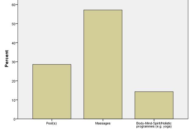 Europe is different again. Pools and medical services are similarly important for foreign tourists. In Australia/New Zealand apart from pools, body-mindspirit programmes are showing relative importance.