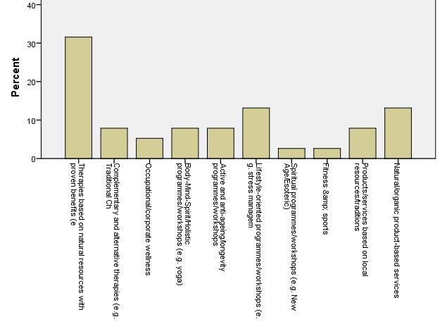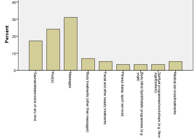 Domestic tourists show a somewhat different interest. Although therapies based on natural resources are clearly the most attractive ones, natural and organic products used in therapies and treatments are also play important role. That is somewhat unexpected that domestic tourists do not find spirituality and fusion therapies and treatments too attractive. Interesting, however that occupational and corporate wellness programmes are more and more combined with travelling away from the workplace.