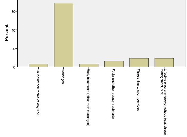 The first position of business events is very much questions since conference and meeting organizers had to recognize that participants of business events and congresses may not want to socialize with colleagues or bosses in a wellness supplier or in a spa (or in the sauna!). Business events often organized in wellness or spa hotels and resorts. The use of wellness and spa suppliers, however, is rather low.