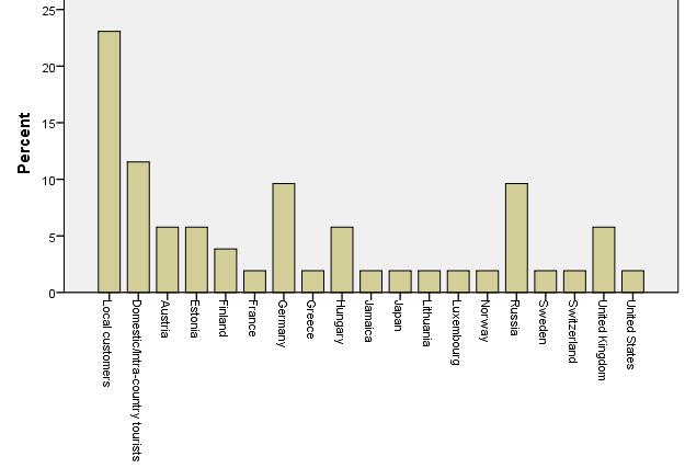 Local customers are the most important market segment followed by domestic tourists (with the exception of Africa). Local customers represent upto 30% of targeting, i.e. some 70% of customers at wellness and spa suppliers are expected to be either domestic or international visitors. Previously could see that the average share of tourists was about 43%, i.e. suppliers are working on to attract more tourists!