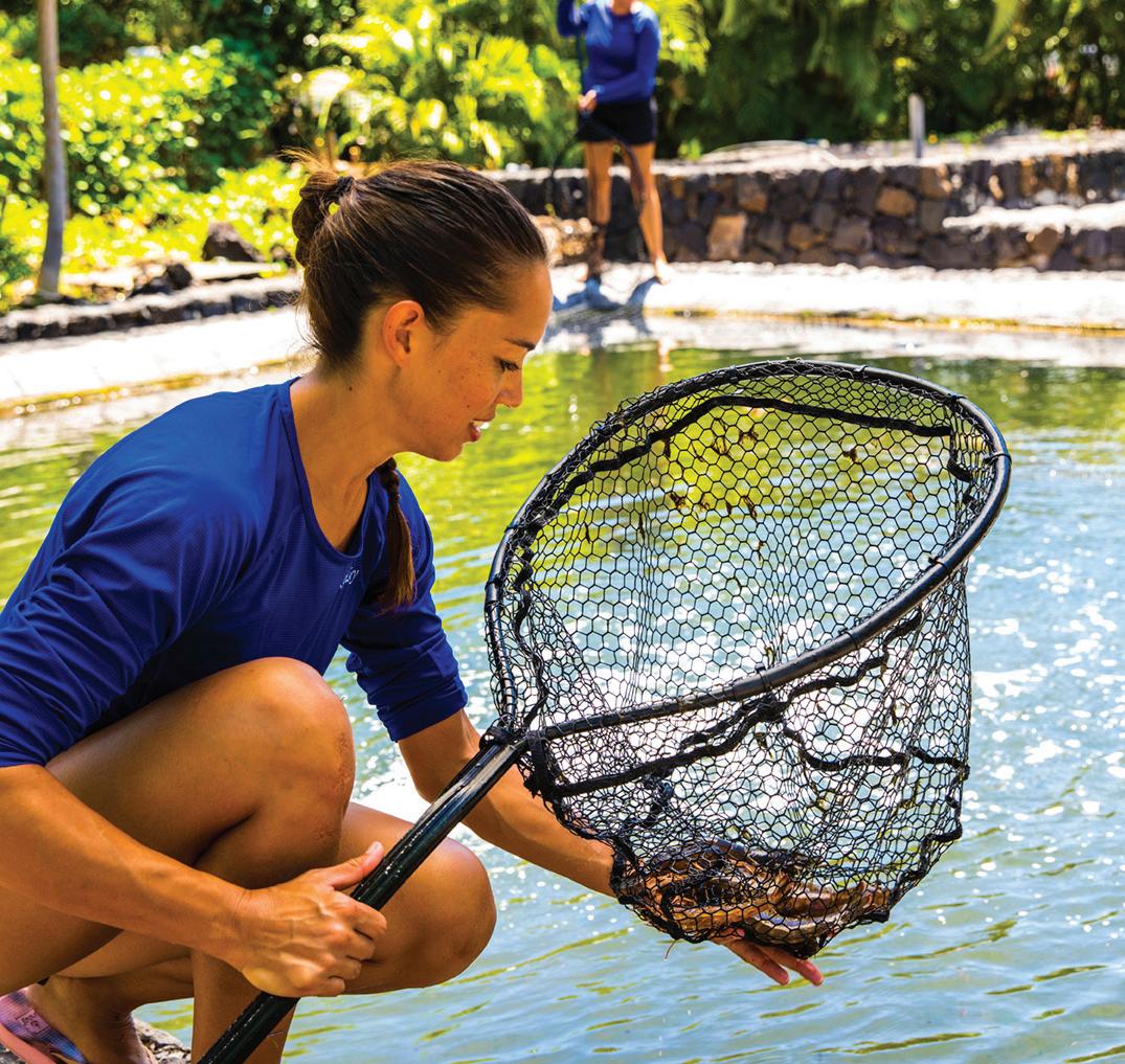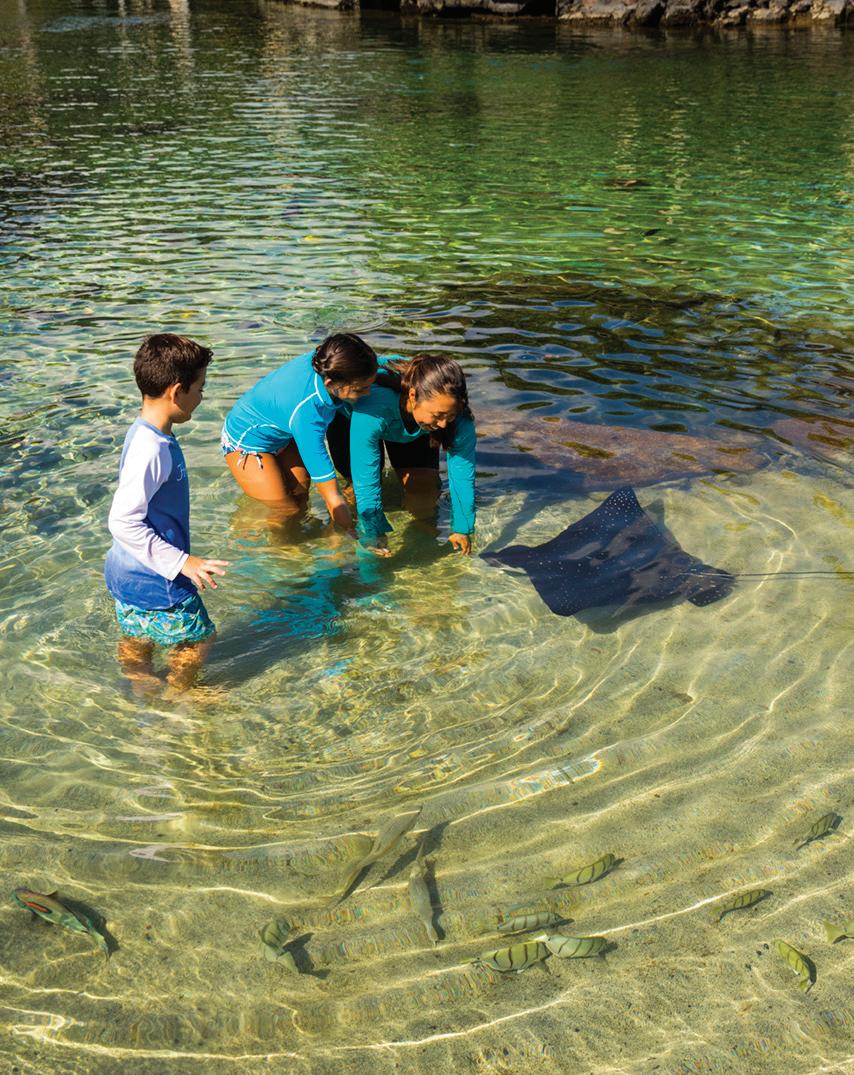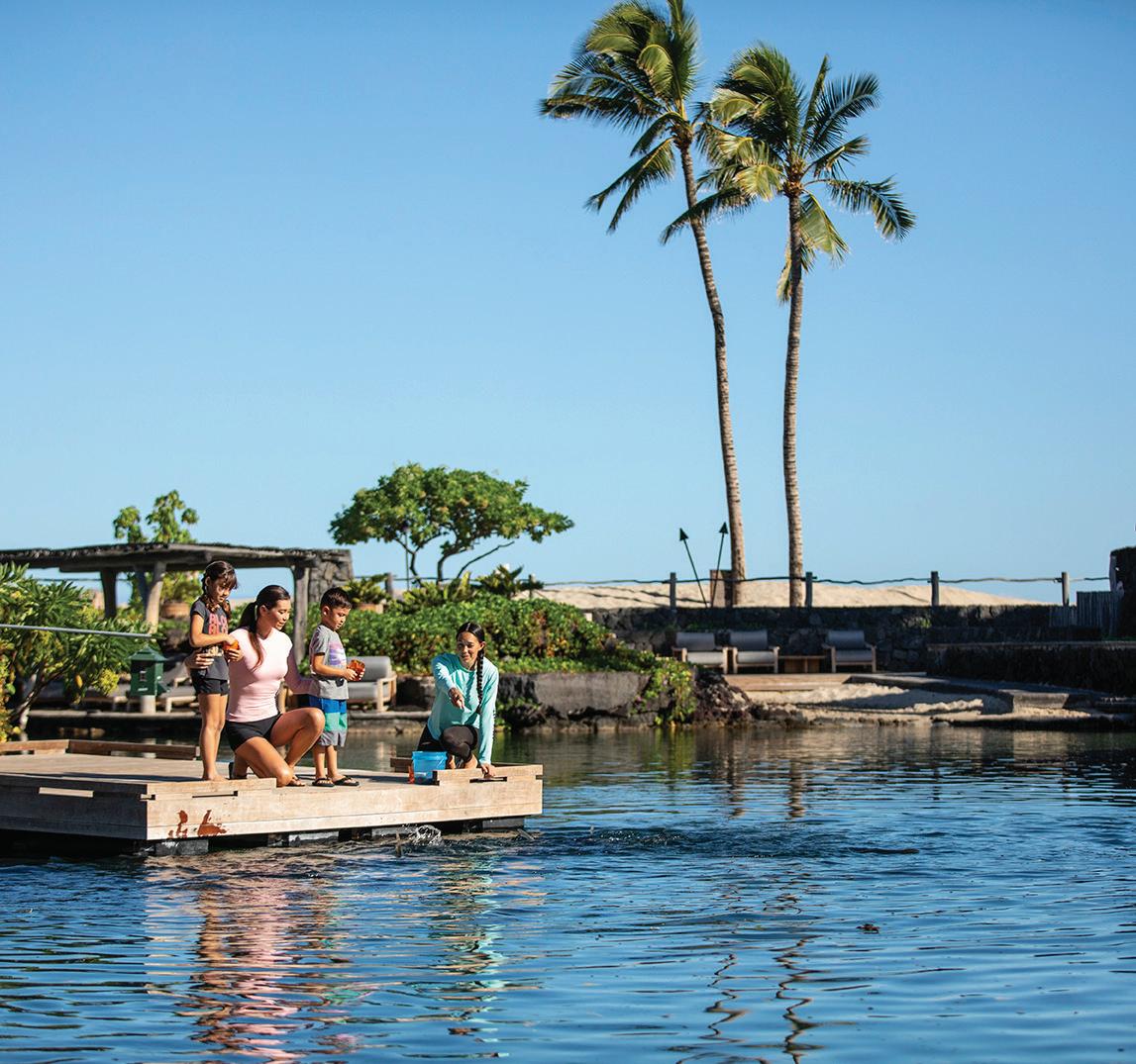 Being stewards of the land and sea here at Hualālai Resort is taken to heart with the Natural Resources Department. The Marine Naturalists manage five ponds, assist with the co-management of our coastline, provide seafood for our restaurants, and have developed unique programing for guest and residents to learn about and interact with our fascinating wildlife and ecosystems. At the marine center “Kumu Kai,” families can engage in some of these programs.