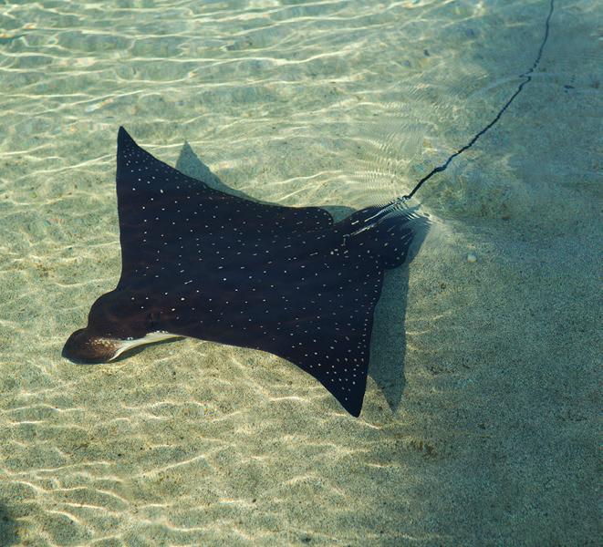 Don’t shy away from this amazing experience! Kainalu is King’s Pond resident spotted eagle ray (Aetobatus ocellatus). He has displayed his unique personality through behavioral patterns and eating habits. Some of his favorite foods include shrimp and mussels. All ages welcome.