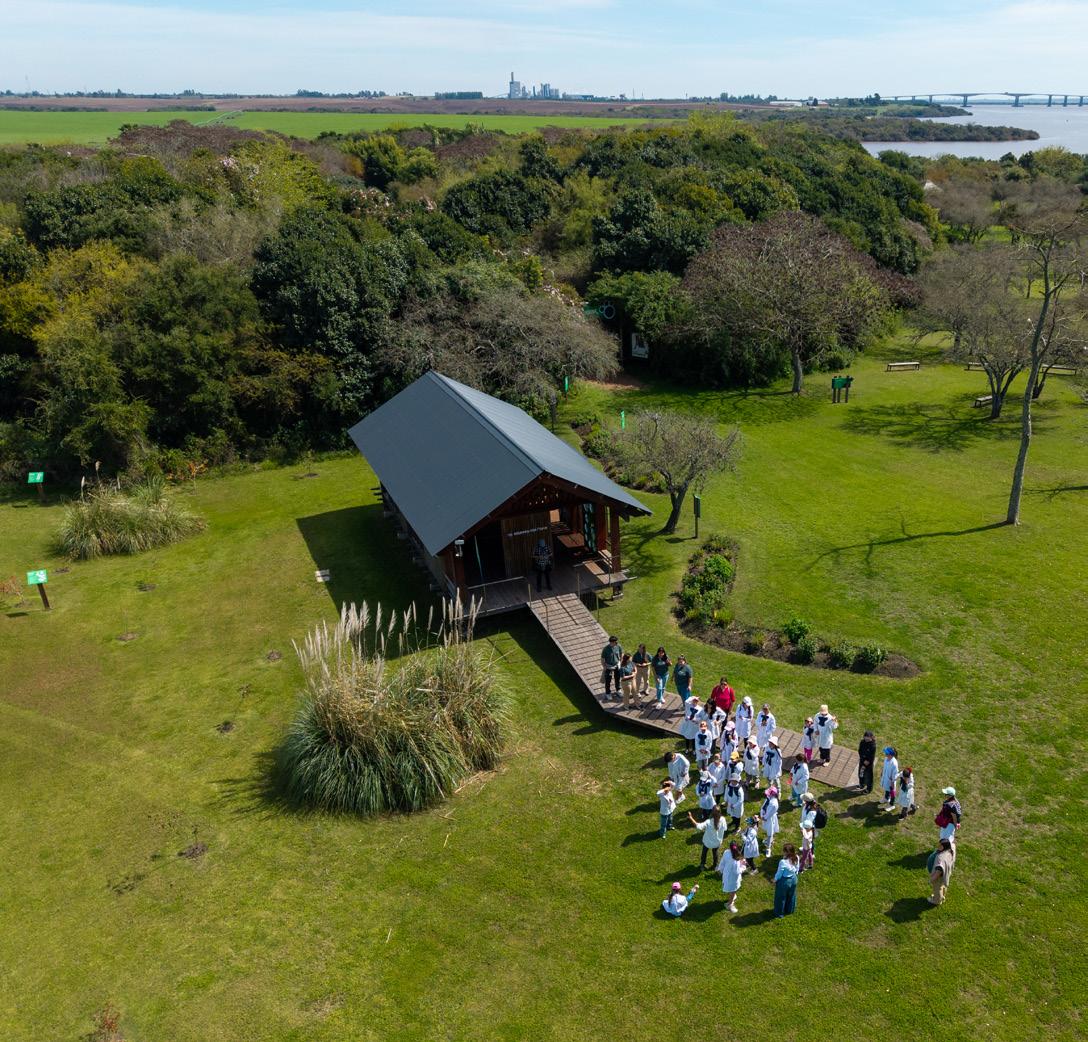 En 2025 realizamos un ciclo de visitas al Bioparque M’Bopicuá de Montes del Plata, con tres escuelas rurales: 16 de La Curva y 26 de Batoví, de Durazno, y 48 de Ecilda Paullier. Esta es una actividad que combina aprendizaje, integración y diversión entre los niños, maestras, padres e integrantes del equipo de nuestro equipo.