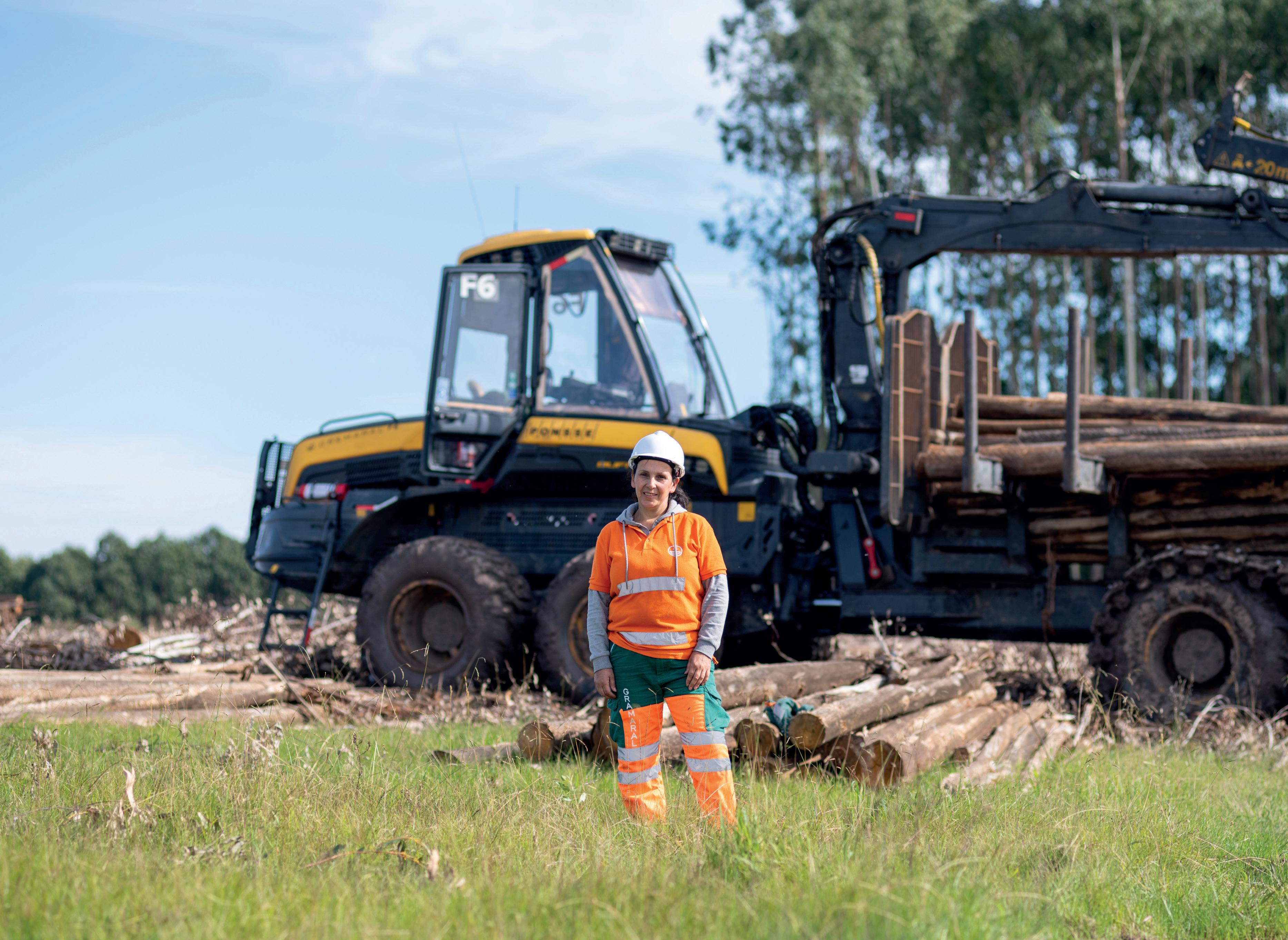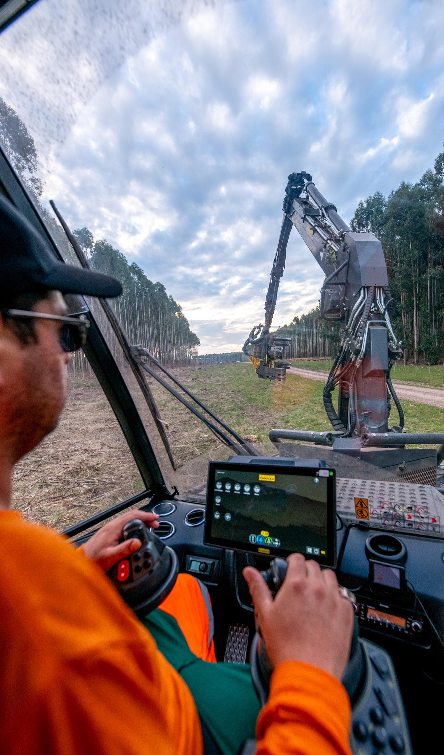 se mantiene. Fue el momento en que dimos el gran salto: pasamos de la motosierra a las máquinas forestizadas Caterpillar. Un cambio enorme, desafiante, que abrió la puerta a una nueva etapa. Un año más tarde, en 2013, firmamos también el contrato de transporte con Montes del Plata, empezando con cinco camiones Scania y sumando otros cinco a los seis meses. Desde entonces, hemos renovado la flota contrato tras contrato.