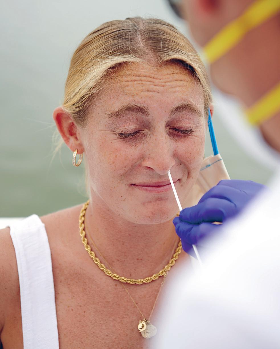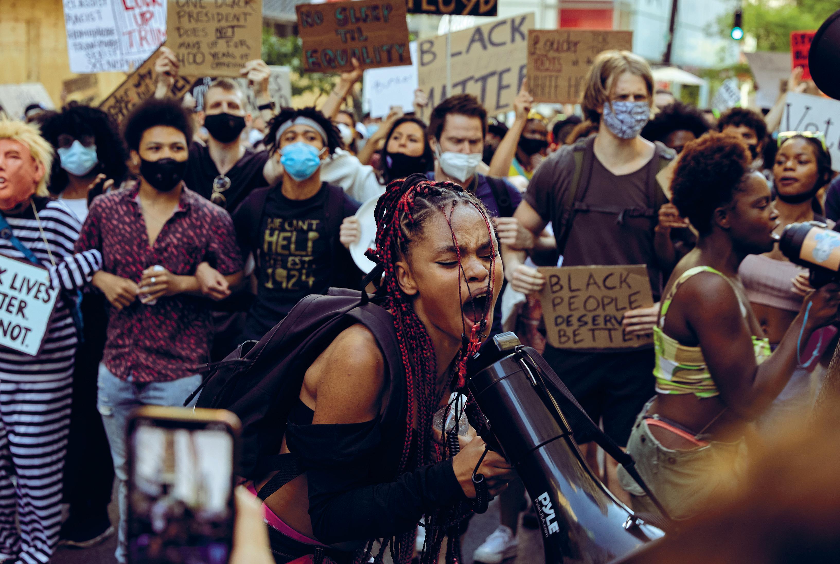 Student Maiya Imani Wright ’21 captured this photograph as a protester was being treated by student doctors and nurses after being pepper-sprayed by police in Brooklyn in May 2020. “I witnessed everyone jumping in with first-aid kits, student doctors and nurses all coming together,” she says. “I see it as ‘Look what they are doing to us Black people and our allies, peacefully protesting, trying to make a change.’ And, ‘Look how the young people can all come together to protect each other, regardless of race.’” The photo was published in New York magazine. For more photographs that document last year’s struggles, turn to page 16 for “2020: The Year in Pictures.”