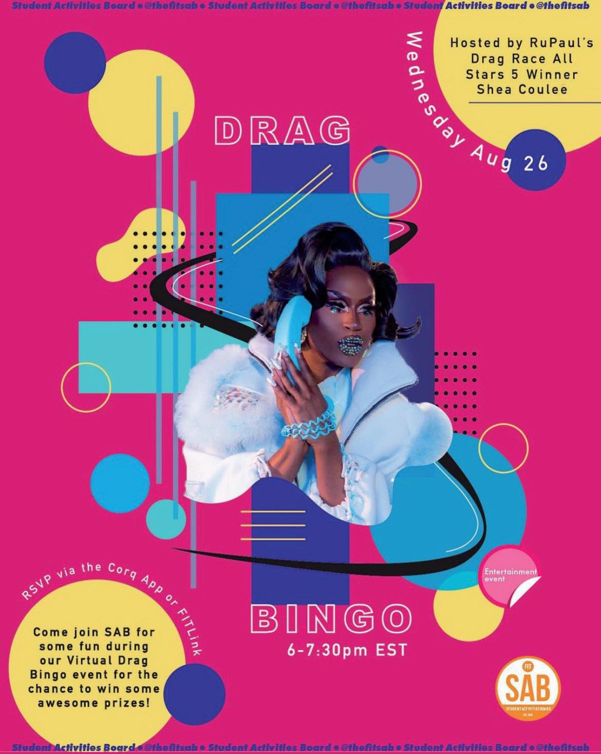 When Uribe started landing superstars for the SAB’s events, he saw a significant uptick in audience numbers. Above: A virtual flyer for drag bingo with Shea Couleé.