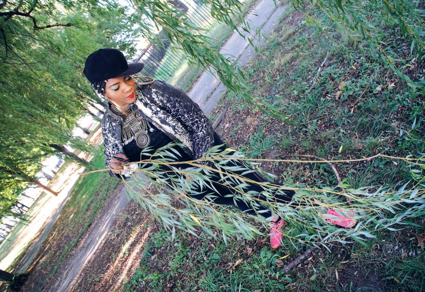 “I was a little punk who wore and sold ripped-up tees with spikes, heavy chains, and splattered paint everywhere,” she says. “NYC’s gra ti art influenced me a lot.”