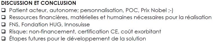 Cette solution est innovante car elle regroupe et réutilise des données qui n’ont jamais été regroupées jusqu’ici, issues de sources institutionnelles et de sources provenant de patients eux-même, qu’ils documentent dans leur environnement via des applications développées aux HUG (Dolodocet Cara)