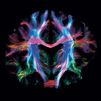 Grâce au fort signal de l'IRM 7T, il est possible de voir les fibres allant d’une région cérébrale à l’autre et se croisant dans certaines sub-régions cérébrales.