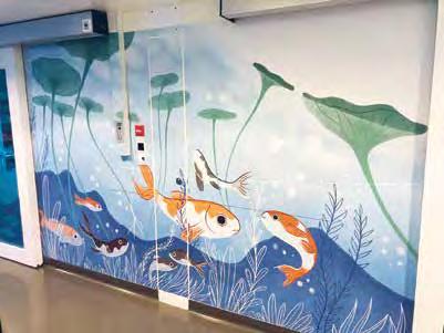 le sas d’entrée, les « isolettes » pour les enfants greffés, la pharmacie ainsi que les deux bureaux des équipes médicosoignantes ont été entièrement redécorés. Au total, 300 m2 d’autocollants ont été posés : une performance technique dans un lieu d’hospitalisation dit « protégé » et dévolu à l’activité diagnostique et thérapeutique des enfants, adolescentes et adolescents atteints d’un cancer ou d’une affection du sang et de la circulation sanguine. Murs, plafonds et vitres sont désormais habillés d’adhésifs imprimés qui respectent toutes les normes en matière d’hygiène hospitalière.