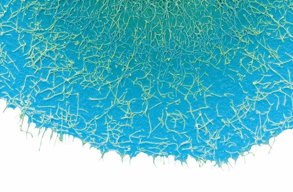 Cellules cancéreuses ovariennes (image grossie 10 000x).