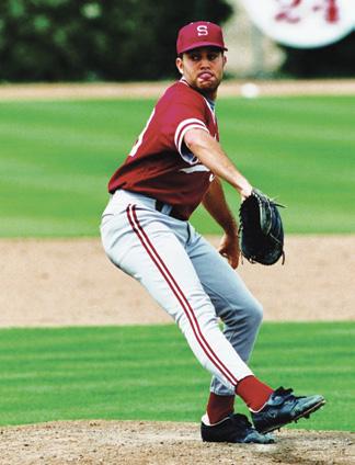 Right: Mike in his college days pitching for Stanford University.
