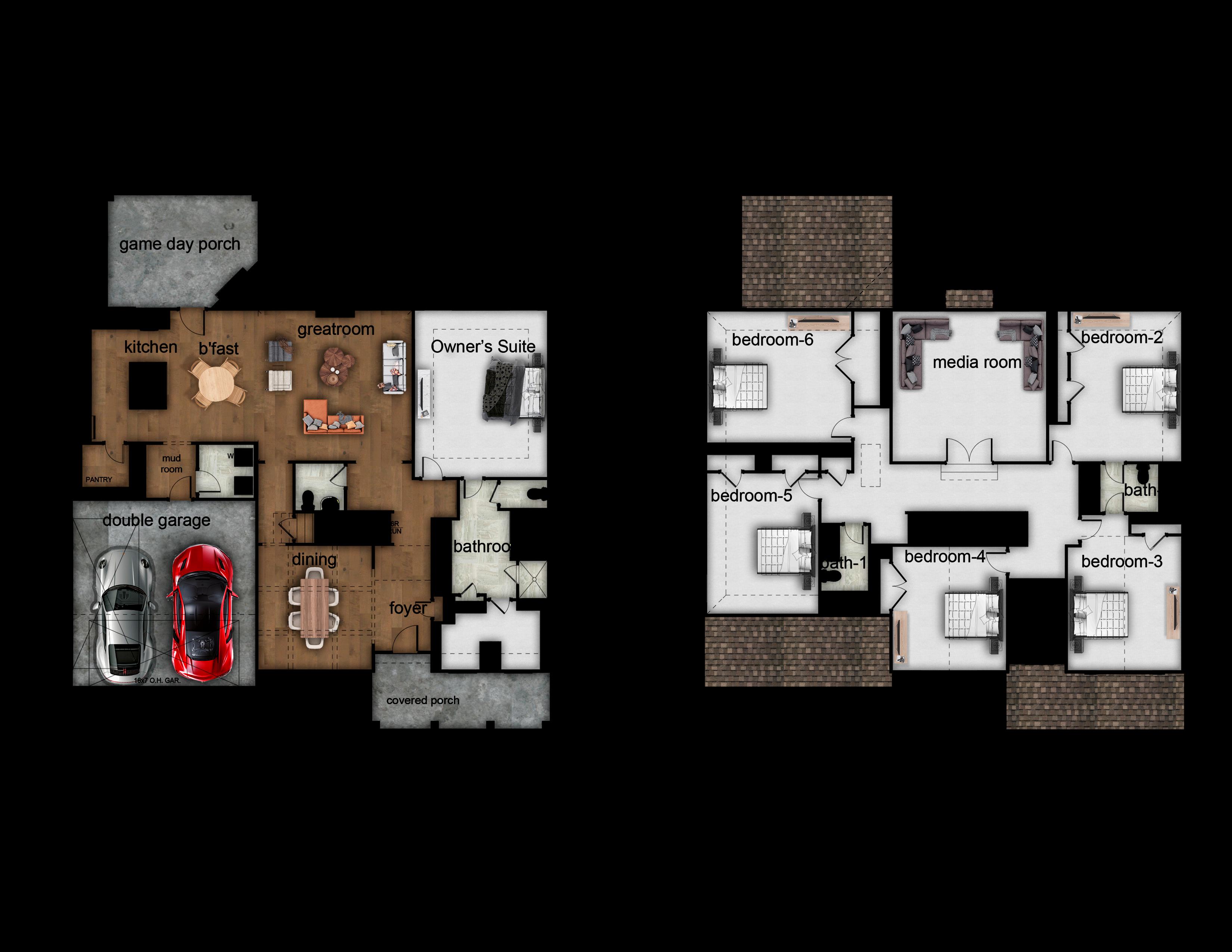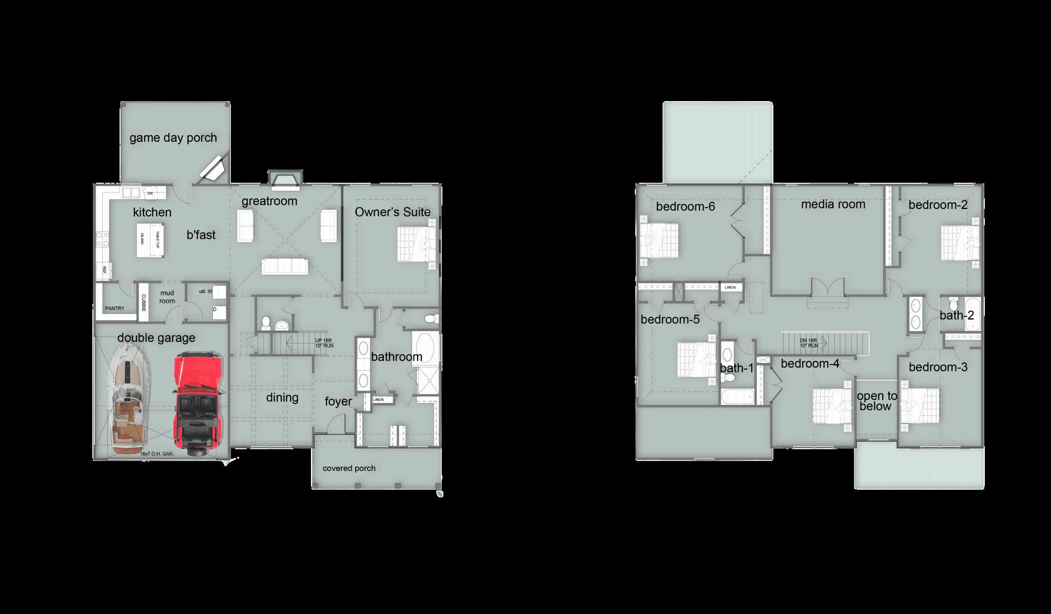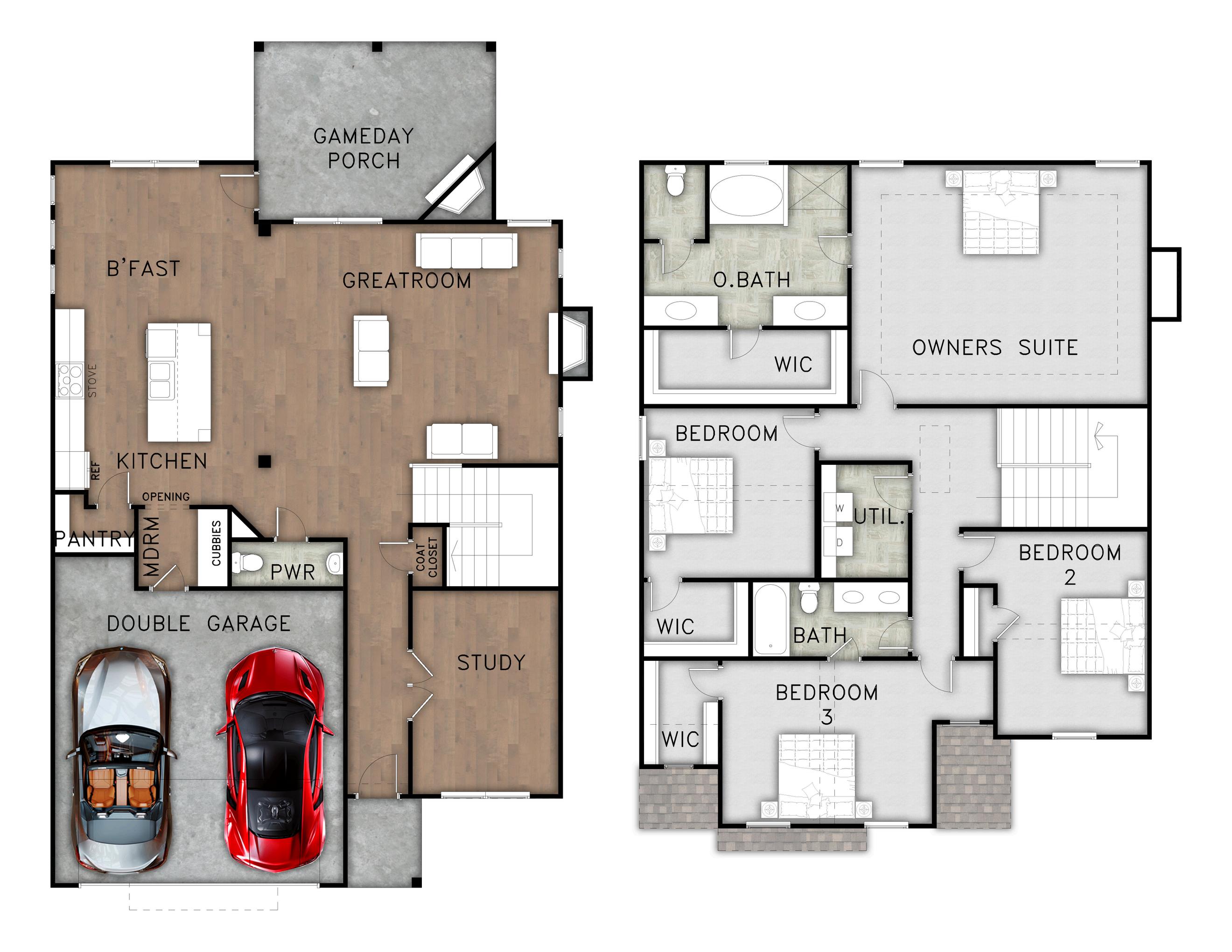 Exterior material placement is determined by community design Front or Side Entry Garage and Game Day Porch determined per homesite/community Please see included features page for community of interest, visit our on-site New Home Specialist, or contact our Online Sales Counselor for more specific design information.