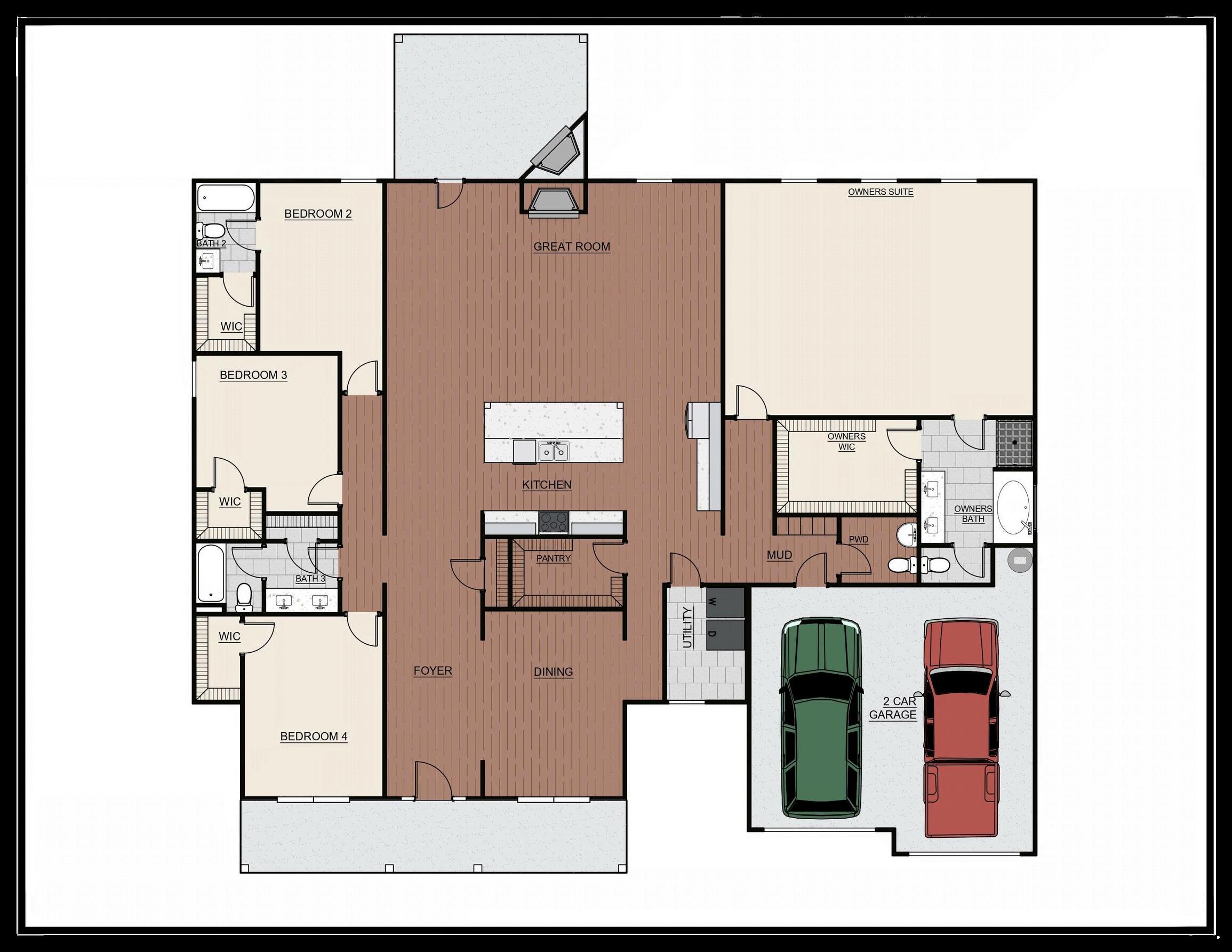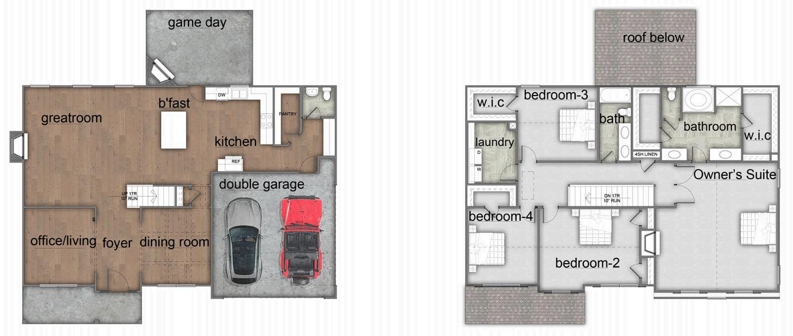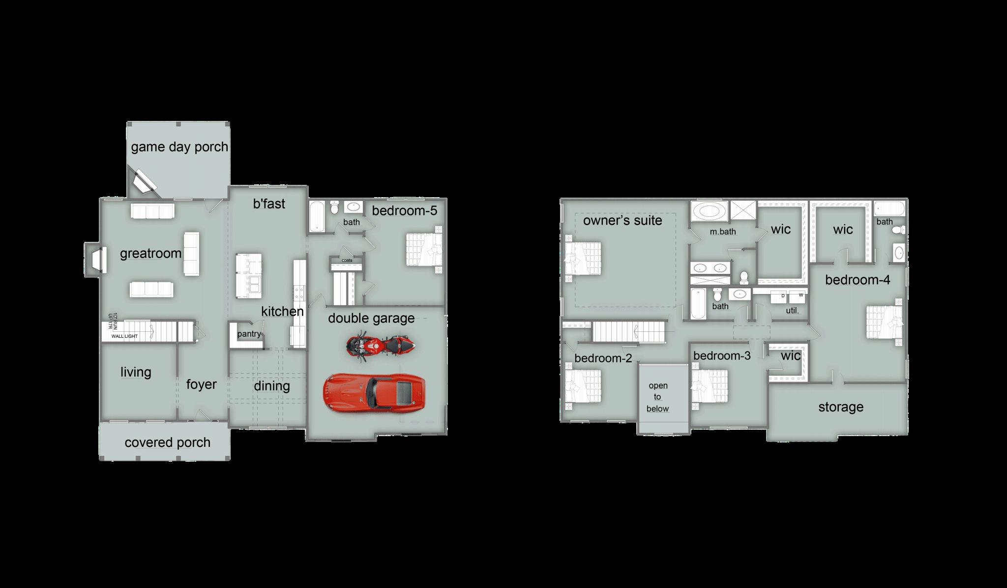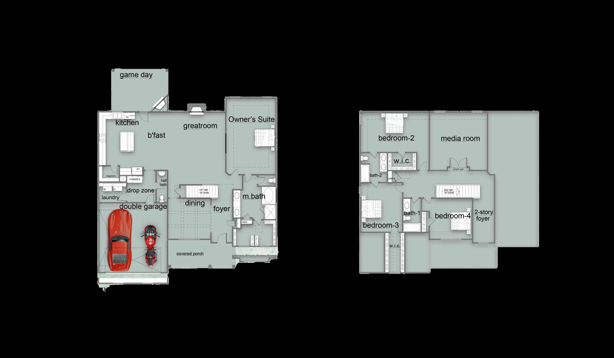Exterior material placement is determined by community design Front or Side Entry Garage and Game Day Porch determined per homesite/community Please see included features page for community of interest, visit our on-site New Home Specialist, or contact our Online Sales Counselor for more specific design information