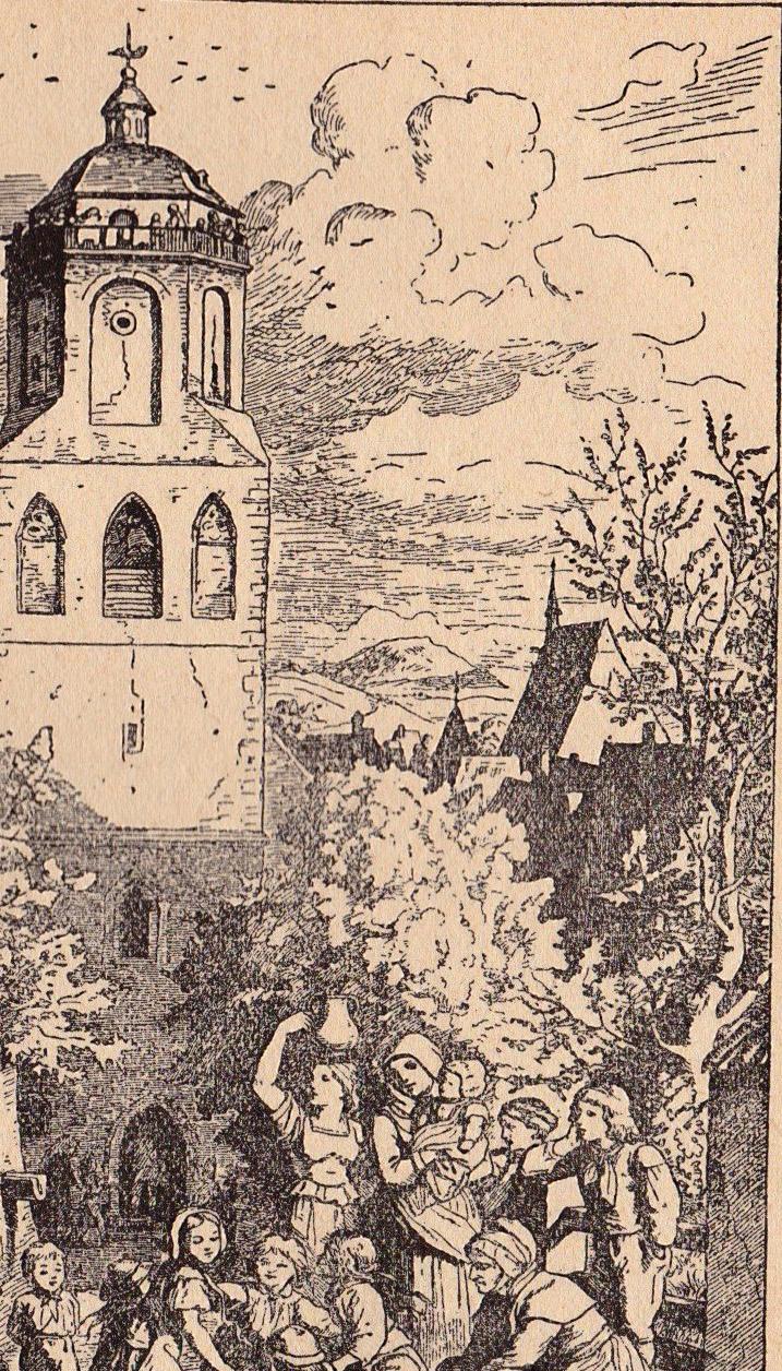 »Ich bin die Jungfer Binsefuß, Und meine Fisch’ wohl hüten muss, Meine Fisch’ die sind im Kasten, Sie haben kalte Fasten; Von Böhmerglas mein Kasten ist, Da zähl’ ich sie zu jeder Frist.