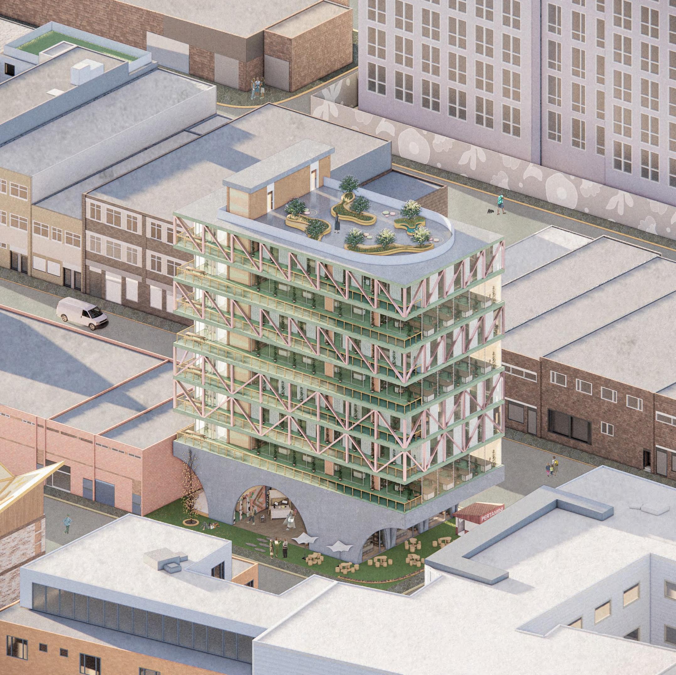 Cultural and socio-economic shifts since the late 20th century have transformed Liverpool into a consumer-focused city. This project addresses this issue by designing a light industrial workspace in Liverpool’s historically significant Fabric District. The aim is to reintegrate productive spaces into the city center, countering urban monoculture and enhancing diversity. Additionally, the project investigates how these industrial spaces can positively influence the development of emerging areas in Liverpool, fostering a vibrant architectural mix.