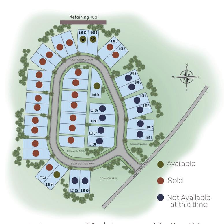 C Lot 28 Model Starting Price Lot P Laurel Arrowood Laurel Arrowood Laurel Arrowood Laurel $464,900 $474,900 $464,900 $4 $4 $4 $4 , $ $ $ $ $ $ $ Not Ava at this Lot 37 Lot 1 Lot 26 Lot 25 t 24 A New Way to Build Your Dream Choose your Home Site Choose your Floor Plan Choose your Finishes Conventional Financing: No Construction loan needed. 828.538.4701 thecottages@amarx.net • amarxcommunities.com