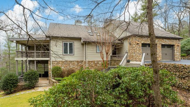 Lake Toxaway Estates - This post and beam home offers an open floor plan with a spacious kitchen and dining area, 4 BR, 3½ BA, a native stone fireplace, expansive outdoor living space and beautiful lake and mountain views. Situated at the top of Hawk Mountain on a 1.68± acre homesite. $1,650,000.. MLS 4010579