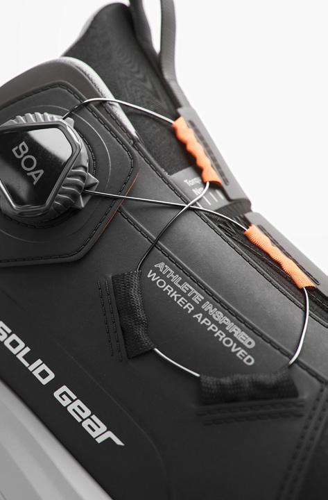 Make work run faster from start to finish. Equipped with an ultraresponsive ETPU midsole, grippy rubber outsole, and OrthoLite® Hybrid insole this shoe is all about comfort and performance. Featuring a CORDURA re/cor™ ripstop upper, redesigned tongue, and the all-new recycled heel counter it turns the revolution up yet another notch. To top it off it has a NANO toe cap, a BOA® Fit System, and a clean monochrome colorway with a splash of that signature Solid Gear orange. ESD function according to EN IEC 61340-5-1:2016.