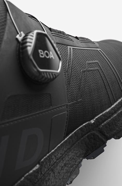 BOA Fit System® and an elasticised sock integrated into the upper keeps debris out and provides, glove-like, fit and feel.