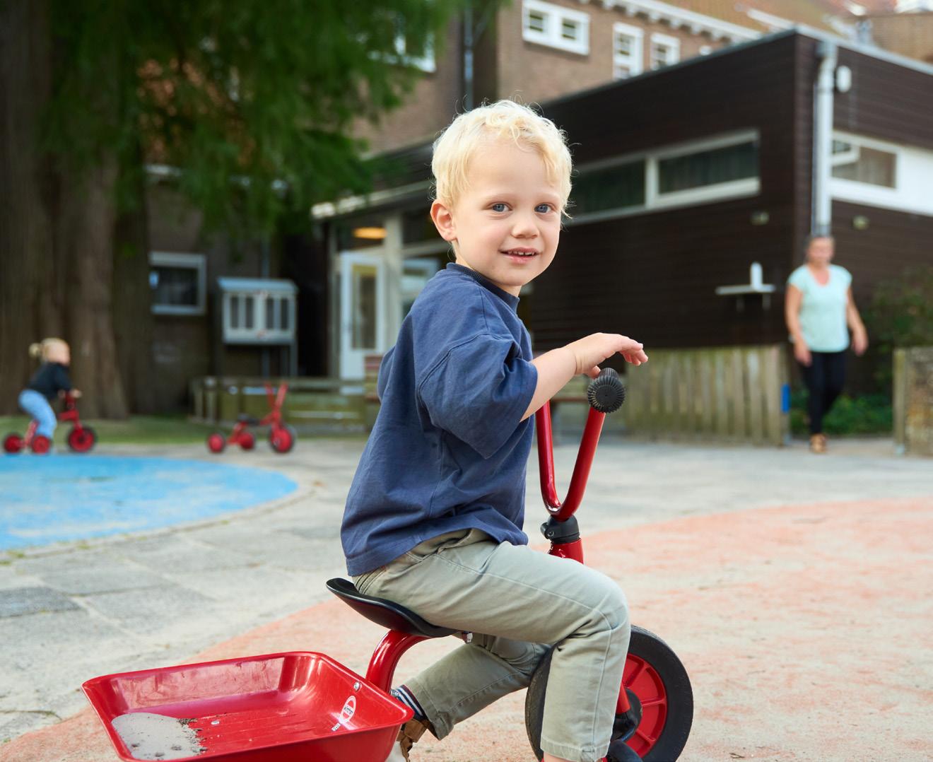 Wij bieden kinderen een omgeving waarin ze zonder gevaren, maar mét voldoende uitdagingsmogelijkheden tevreden kunnen opgroeien. Een omgeving waarin emotionele en fysieke veiligheid voorop staat. Dit betekent ook zorgen voor een gezond lichaam en geest. Een kind dat zich goed voelt, fysiek en mentaal, kan de beste versie van zichzelf zijn. Je ziet dit terug in ons gezonde voedingsbeleid, in onze focus op bewegen en veel buiten zijn.