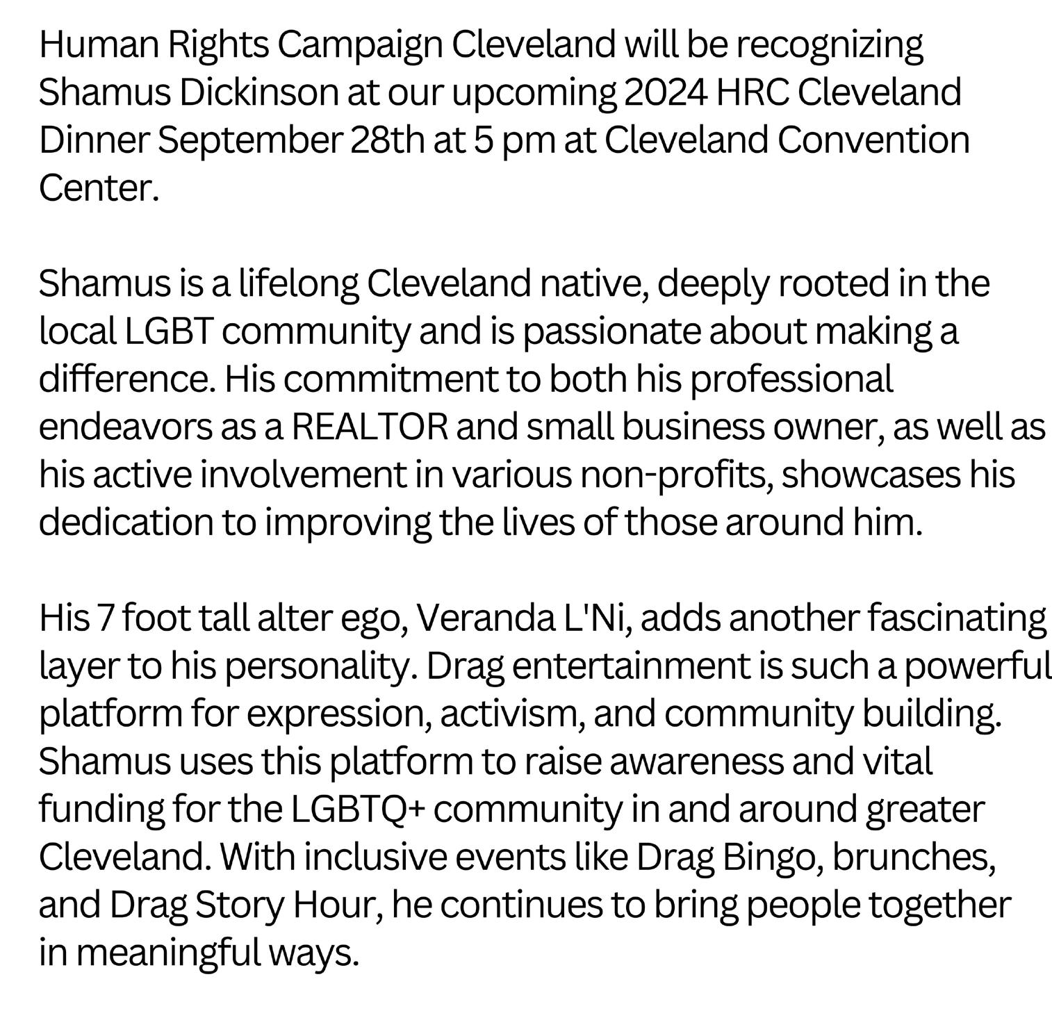Welcome to our 2024 Human Rights Campaign Cleveland Dinner. We want to express our sincere gratitude for the continued support of our collective work towards LGBTQ+ equality.