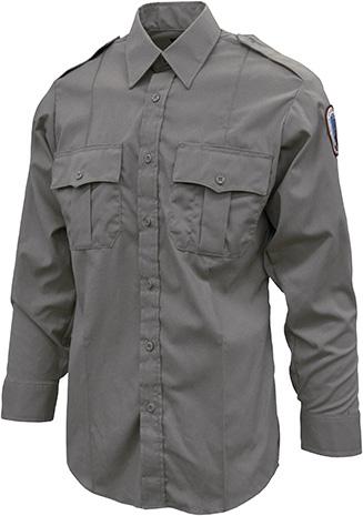 65/35 Polyester Cotton Fabric blend 4.25oz wt. Interlined collar, epaulets, two front chest pockets with flaps, reinforced badge tab, longer length to sides to keep shirt tucked in.