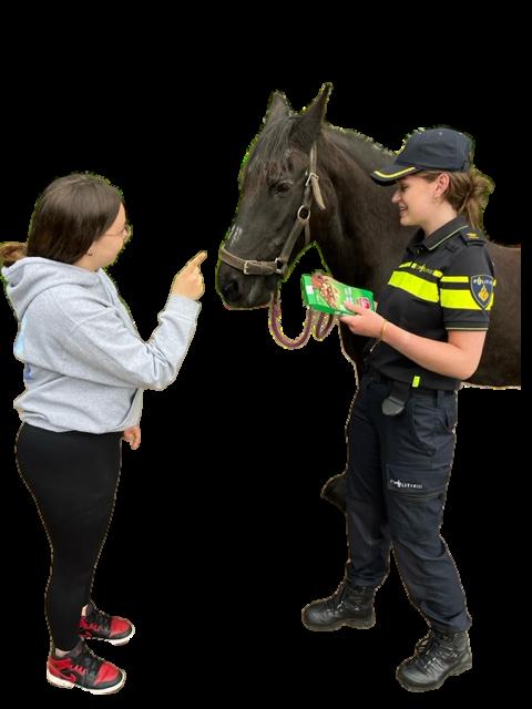 De bereden politie! Ze wilde wat lekkers geven aan de paarden.
