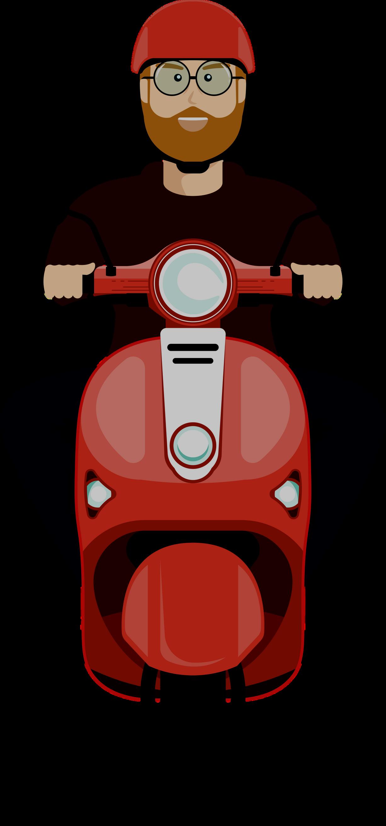 daar rijdt een pannenkoek met zijn telefoon op de scooter!