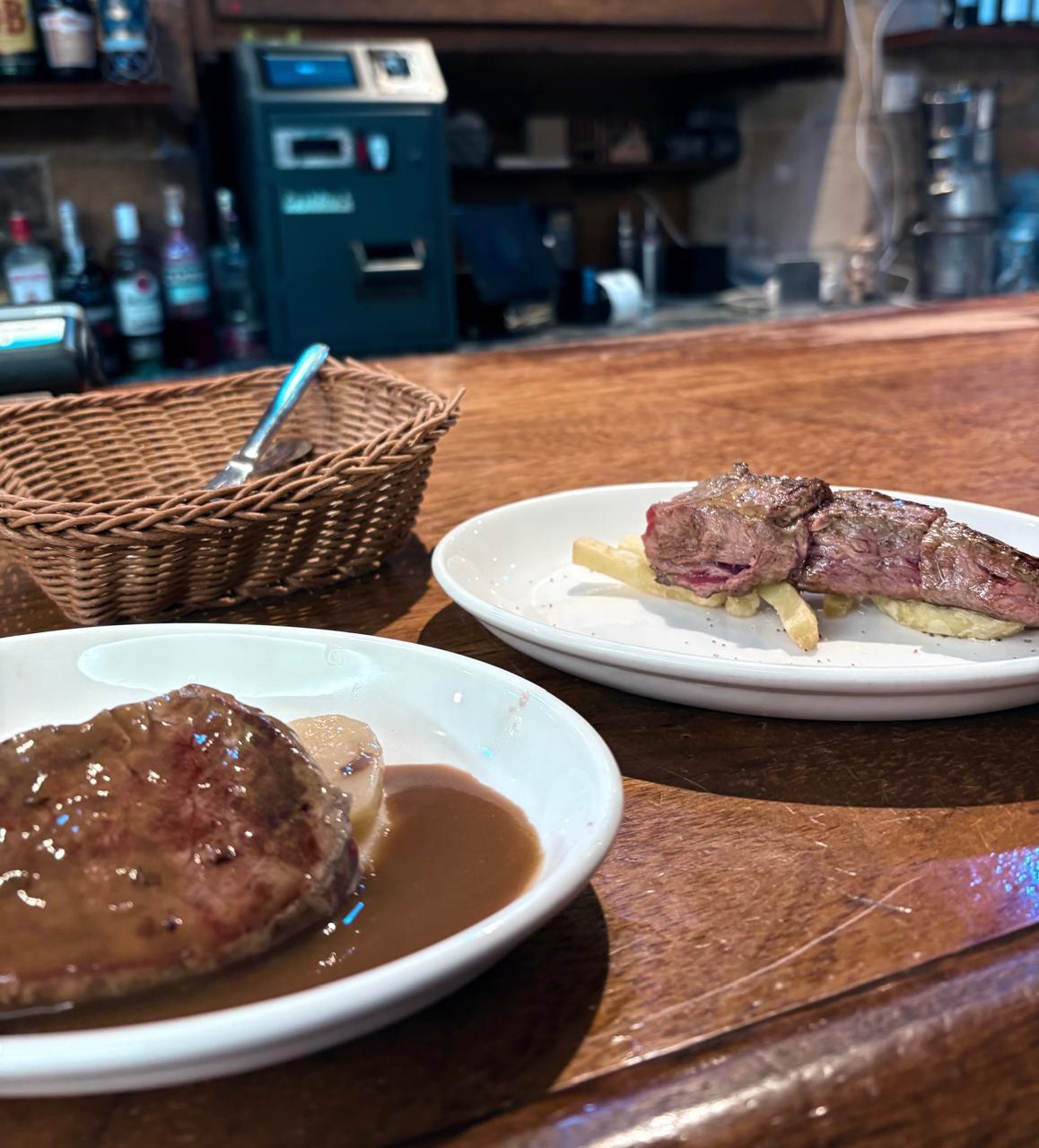 Amidst a mix of languages –English, Japanese, and “Argentine” (noted for its distinctness from Mexican Spanish)– I craved something more substantial. San Sebastián and the Basque Country are famous for grilled beef. Seated at the bar of Txapalo, I ordered the famous Txuletón (a thick rib steak) and a sirloin in Port wine sauce.