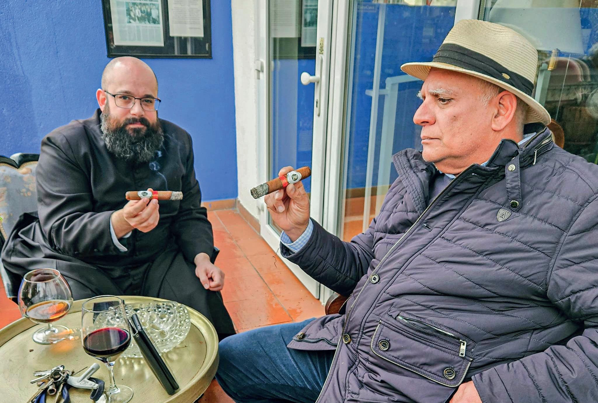 Pero claro, no consideró que aquí nos conocemos todos y fue a caer en la boca de uno de mis mejores amigos, también fumador de puros, Felipe Lorenzo, quien le puso al corriente de nuestras correrías de juventud y otras posteriores. Cazado por mi amigo, saltó a las redes sociales y a mis oídos, culminando en un encuentro magnífico con una cena para tres, pues la ocasión merecía la pena. Una velada para profundizar en esos abismos de los intereses y placeres que proporciona un encuentro con tabaco.