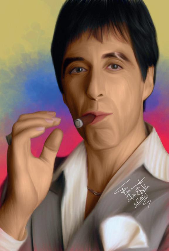 Al Pacino – En Scarface (1983), los puros reflejan el ascenso de Tony Montana al poder, mostrando el exceso y la arrogancia de su personaje.