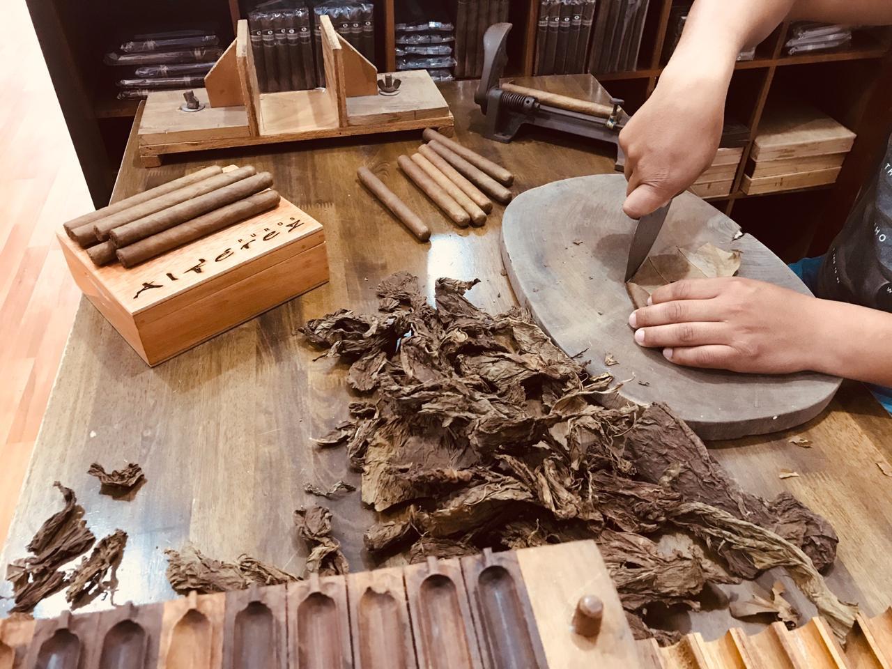 Sobre la vieja mesa que noté desde la ventana, el señor Rubens tenía hojas de tabaco, navajas y prensas de madera. Le pregunté a qué se dedicaba.