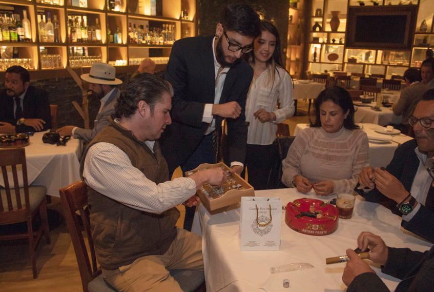 incluyendo comidas pesadas versus comidas más livianas. Una vez que entiendes las pre ferencias de una persona en esas áreas, puedes comenzar a ver lo que pueden ser cigarros apro piados e, idealmente, comenzar a ver esos sabores reflejados en los cigarros. Cuando la persona realmente comienza a utilizar los receptores que tiene en las papilas gustativas y los nervios olfativos, entonces las puertas del conocimiento y de la apreciación de un cigarro realmente se abren. A partir de ahí creo que una per sona siempre debe buscar nuevos retos para el paladar con sabores nuevos y/o desconocidos, a fin de descubrir si han progresado y les comienzan a gustar sabores que antes no. En el peor de los casos, no les gustará algo, pero ganaron la experiencia, y eso para mí es increíblemente valioso.