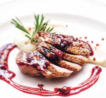 Live tranchiert: Gefüllte Ente mit Backpflaumensauce Schottisches Lachsfilet mit Safran Tranchen vom Roastbeef mit Sauce Bernaise Trüffel-Trofie aus dem Parmesanlaib Winterliche Gemüseauswahl mit Apfel-Rotkohl, Rosenkohl, Karotten und Grünkohl Mini Knödel mit Semmelbutter Kartoffelgratin