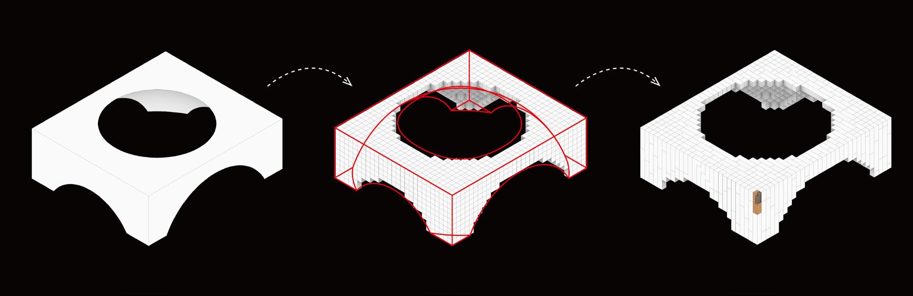 Building module blocks offer high flexibility and can be used for multiple design schemes. This means that when spatial needs or layouts (forms) change, the module blocks can be quickly disassembled and reassembled to create new spatial configurations or forms.