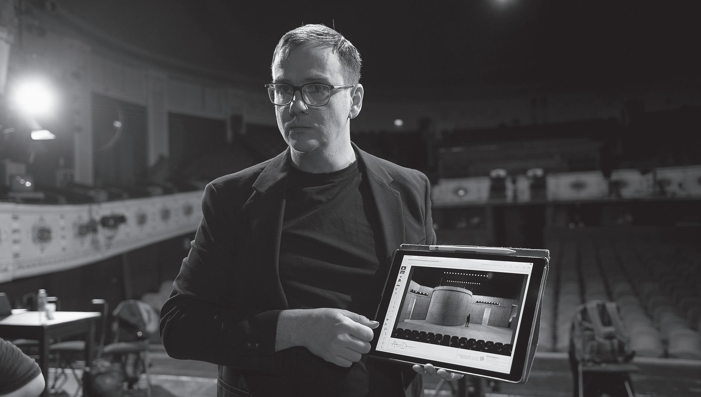 M. M.: Decorul pare a emana, într-adevăr, un soi de răceală. Cu atât mai vizibile vor fi, sper, limbile de foc ale pasiunilor care se dezvoltă pe scenă.