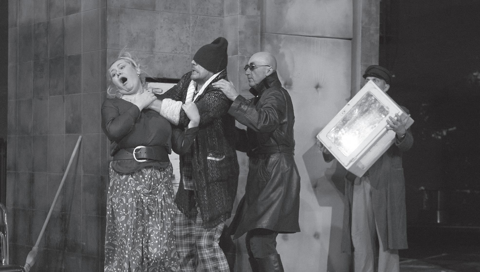 – Victimele datoriei: „psihologia profunzimilor”, expresie luată la propriu, la fel ca „ascensiunea spirituală”, expresia devine imagine scenică.